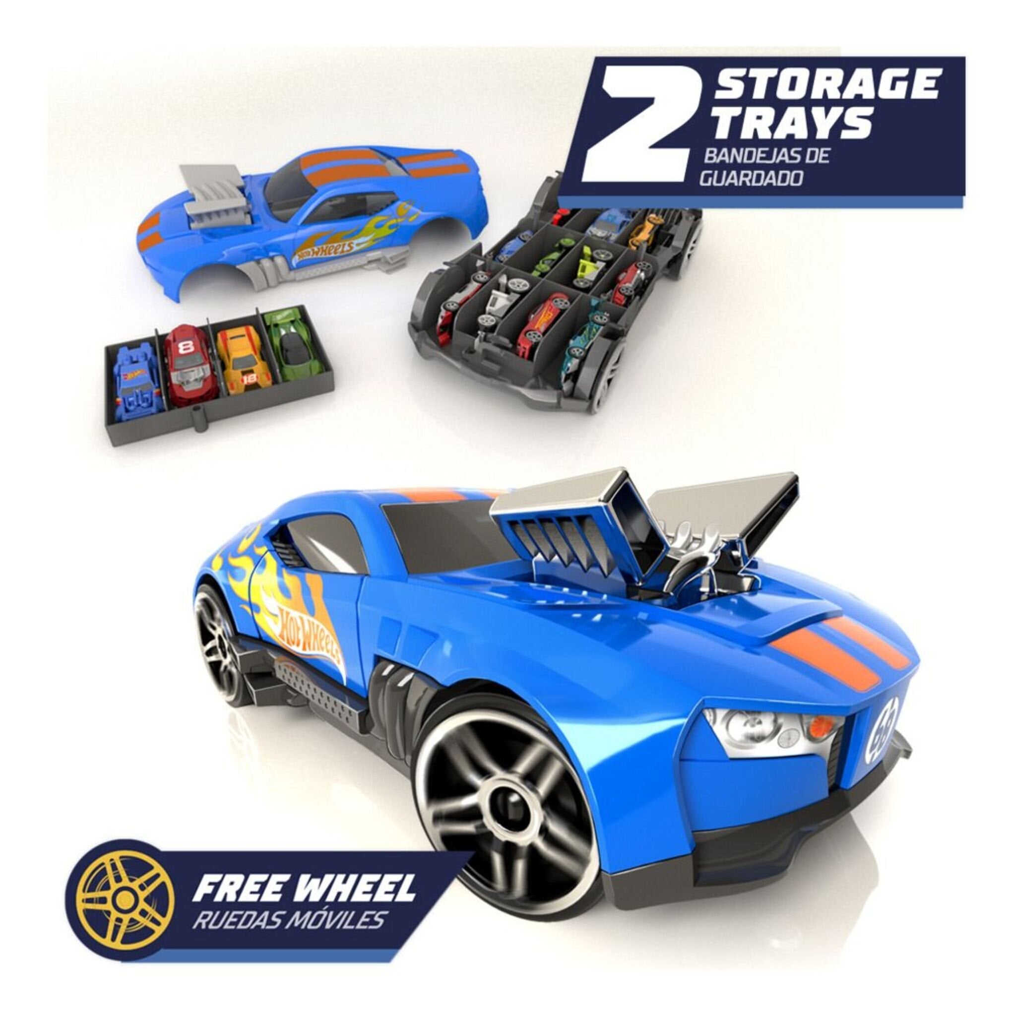 Transport your favourite collection at top speed with the new 2 in 1 free wheel storage car case from Hot Wheels. It features a retractable handle to carry it everywhere.
