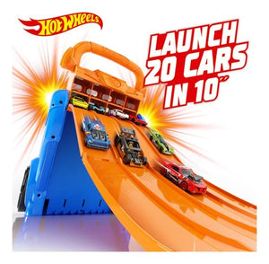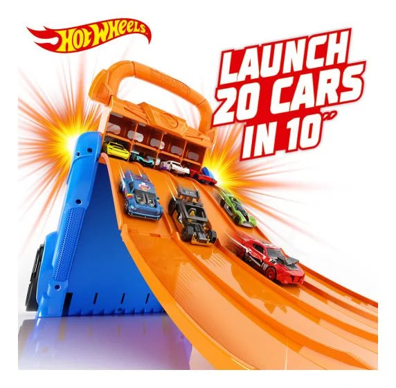 Ignite the thrill of racing with the Hot Wheels Cars Case and Launcher – the ultimate storage solution and race track all in one! This dynamic case is designed with iconic Hot Wheels aesthetics, showcasing the signature flames and vibrant colors that define the world of high-speed adventures. Store up to 20 of your favorite Hot Wheels cars securely and, with the built-in launcher ramp, launch four cars at a time for head-to-head races that will leave you on the edge of your seat. Unleash the power of Hot Wheels and take your collection to new heights with this exhilarating and portable racing experience!