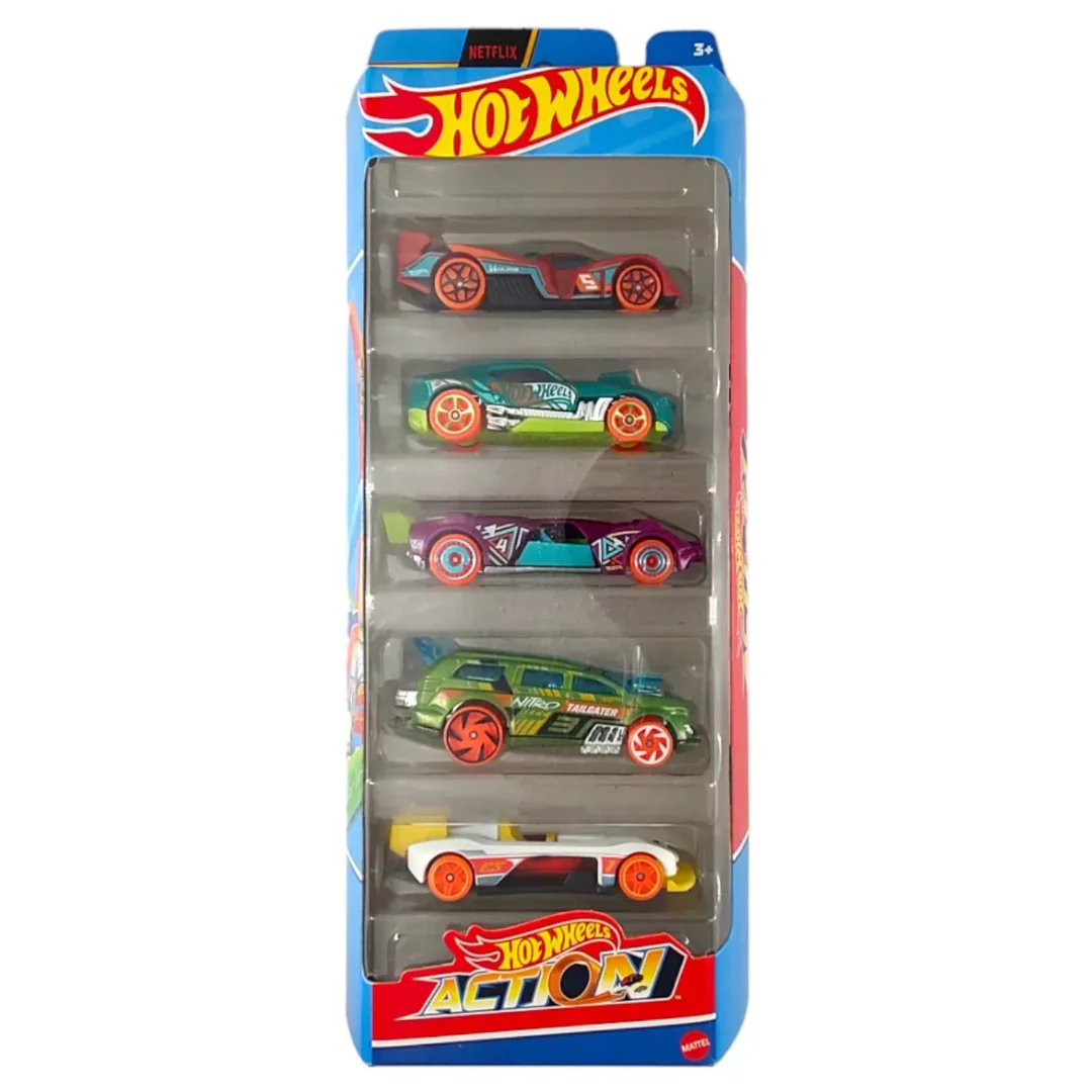 Hot Wheels 5-Car Gift Packs deliver five of the coolest 1:64 scale die-cast vehicles with unifying themes in one package. Each pack is an instant collection. Some of the vehicles are not for use with some Hot Wheels sets. Suitable for ages 3 years and over.