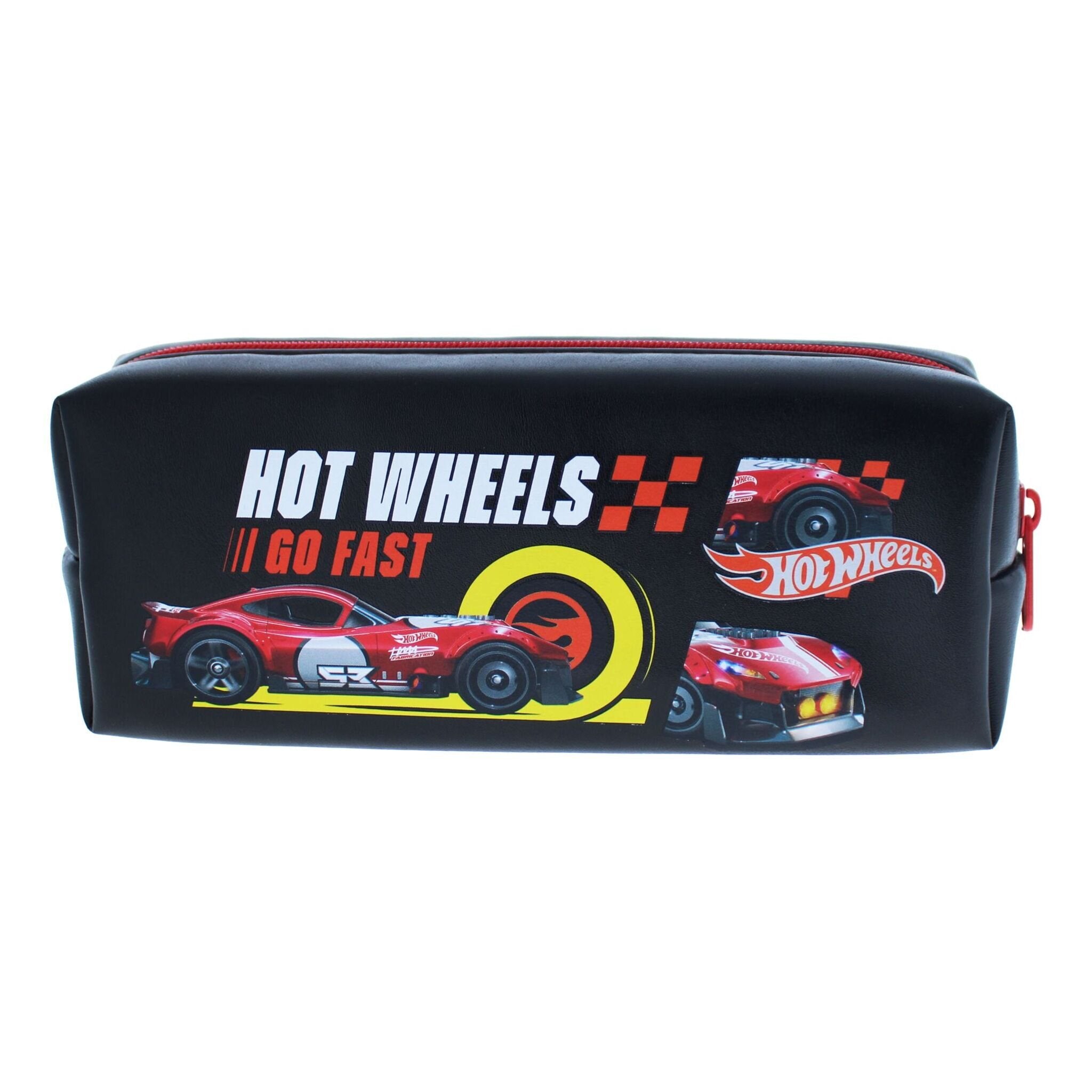 Keep your stationery neat, tidy, safe and secure with this Hot Wheels Pencil Case. It is made from durable PU material and has a novelty car wheel zip pull. It is large enough to hold all your stationery essentials and features a Hot Wheels print and logo.