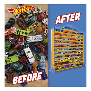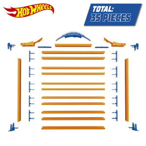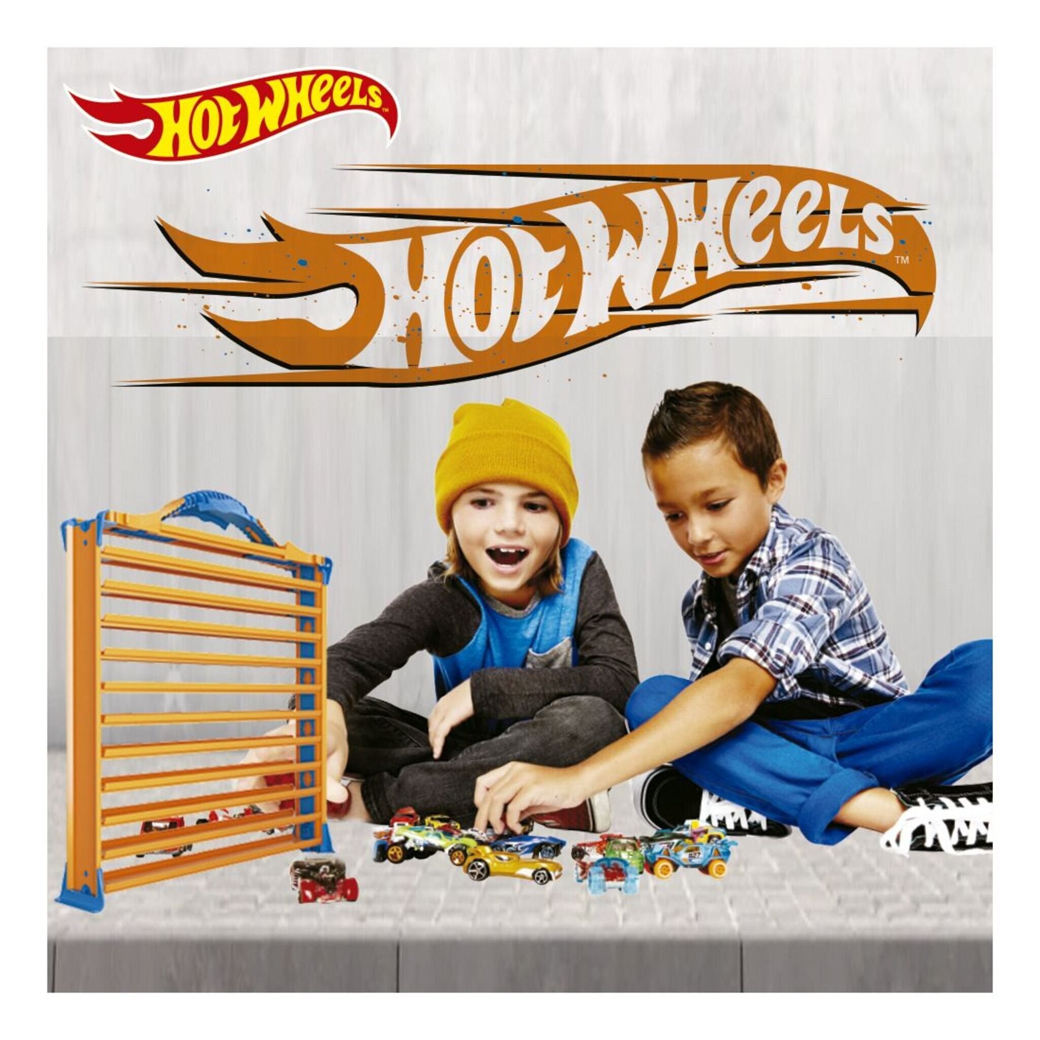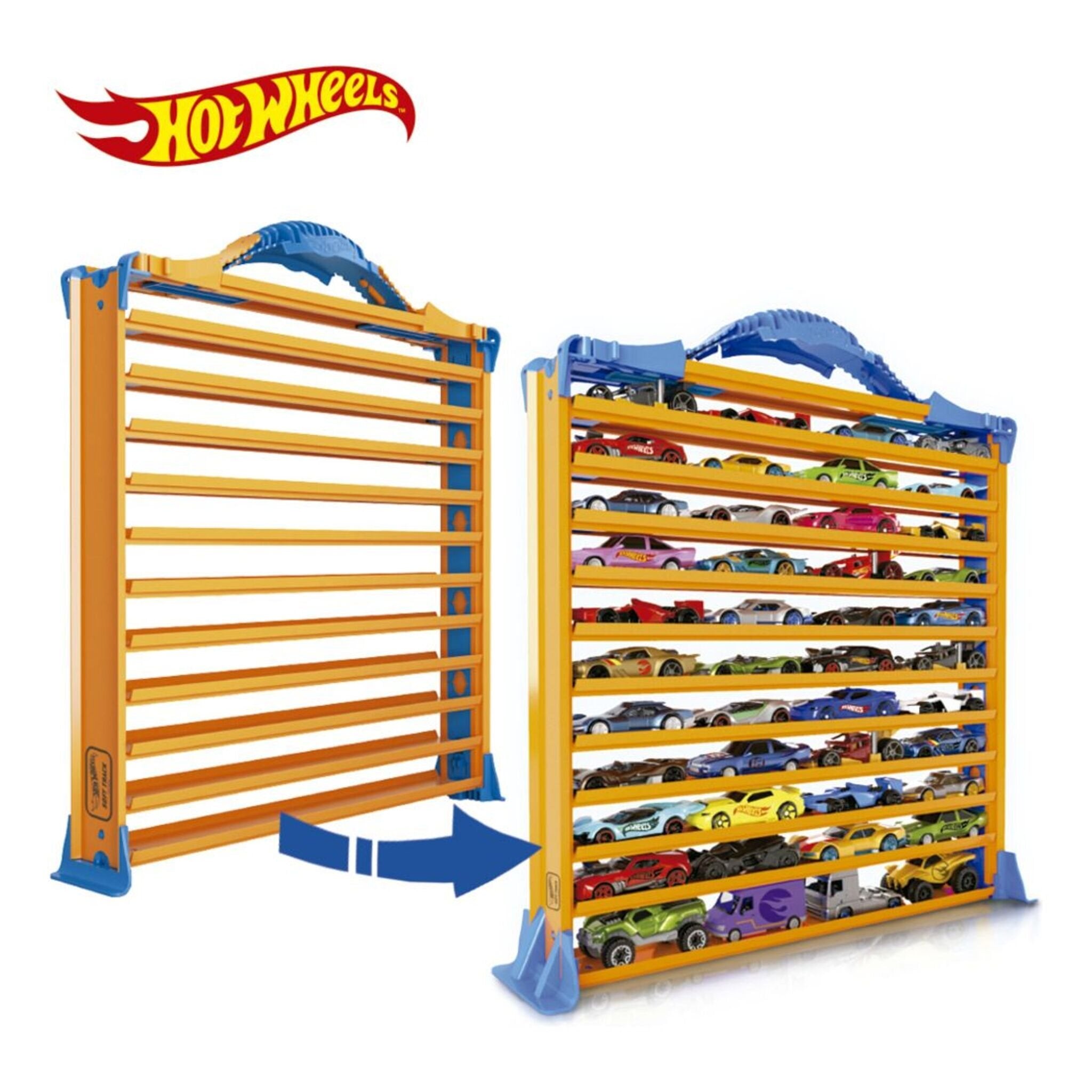 Hot Wheels Rack n' Track Car Case. Boost your creativity with a cool combination of Hot Wheels tracks for big customising fun and store up to 44 of your favourite cars Includes 4 track connectors: 13 regular tracks, 1 small track, 10 brackets, 2 ramps, 1 carry handle, 2 corners and 2 bases Connect to other Hot Wheels track sets (sold separately) for tons of exciting, stunting fun!