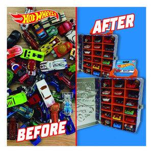 Rev up the fun with the Hot Wheels Tin Car Storage Case! Hot Wheels Tin Car Storage Cases are like pit stops for your miniature speedsters. This shiny metal box is filled with 18 compartments, ready to house your prized Hot Wheels collection. Keep 'em on display or take them on the go, for super fun racing sessions with your mates!
