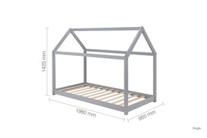 It's time for your kid's independence with their very own house (bed). The wooden bed frame in the shape of a house is the perfect bed for your little one's bedroom.