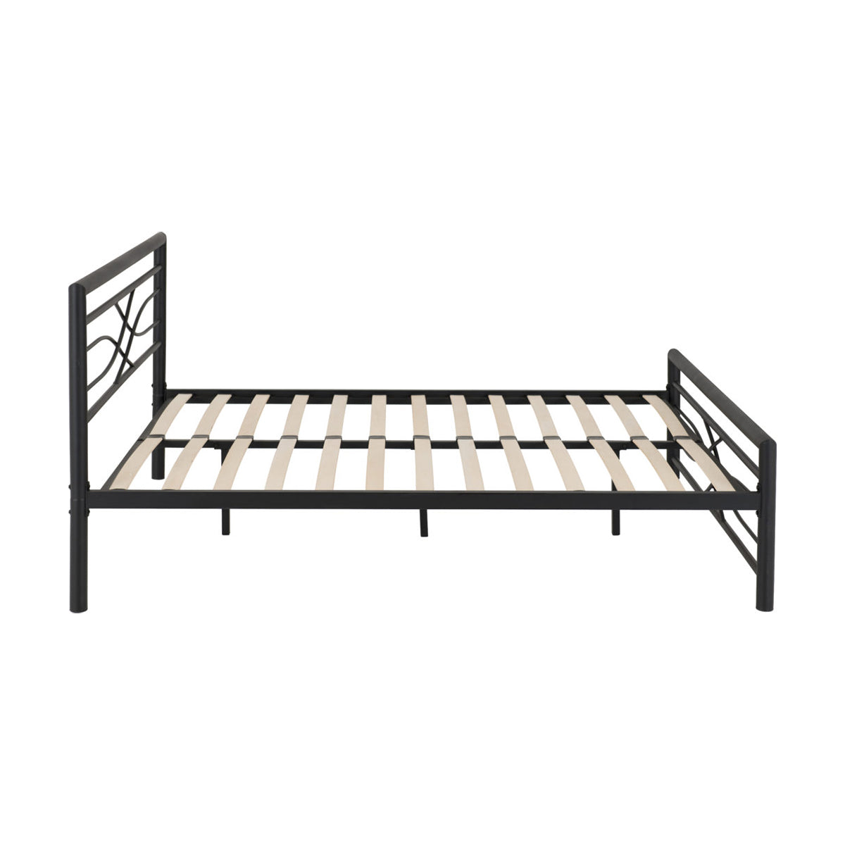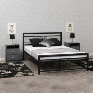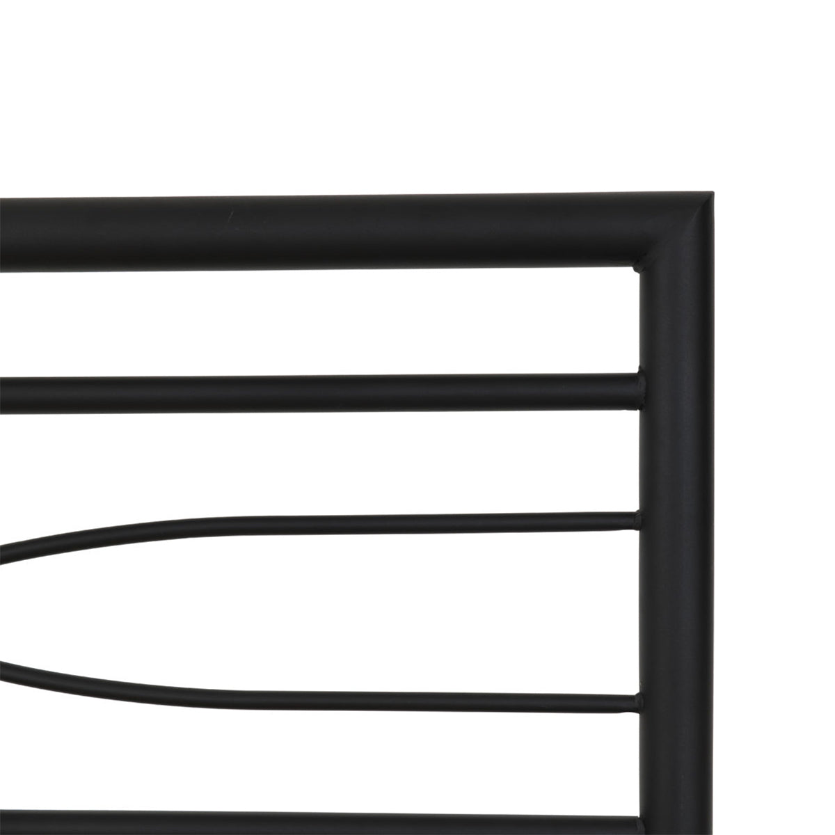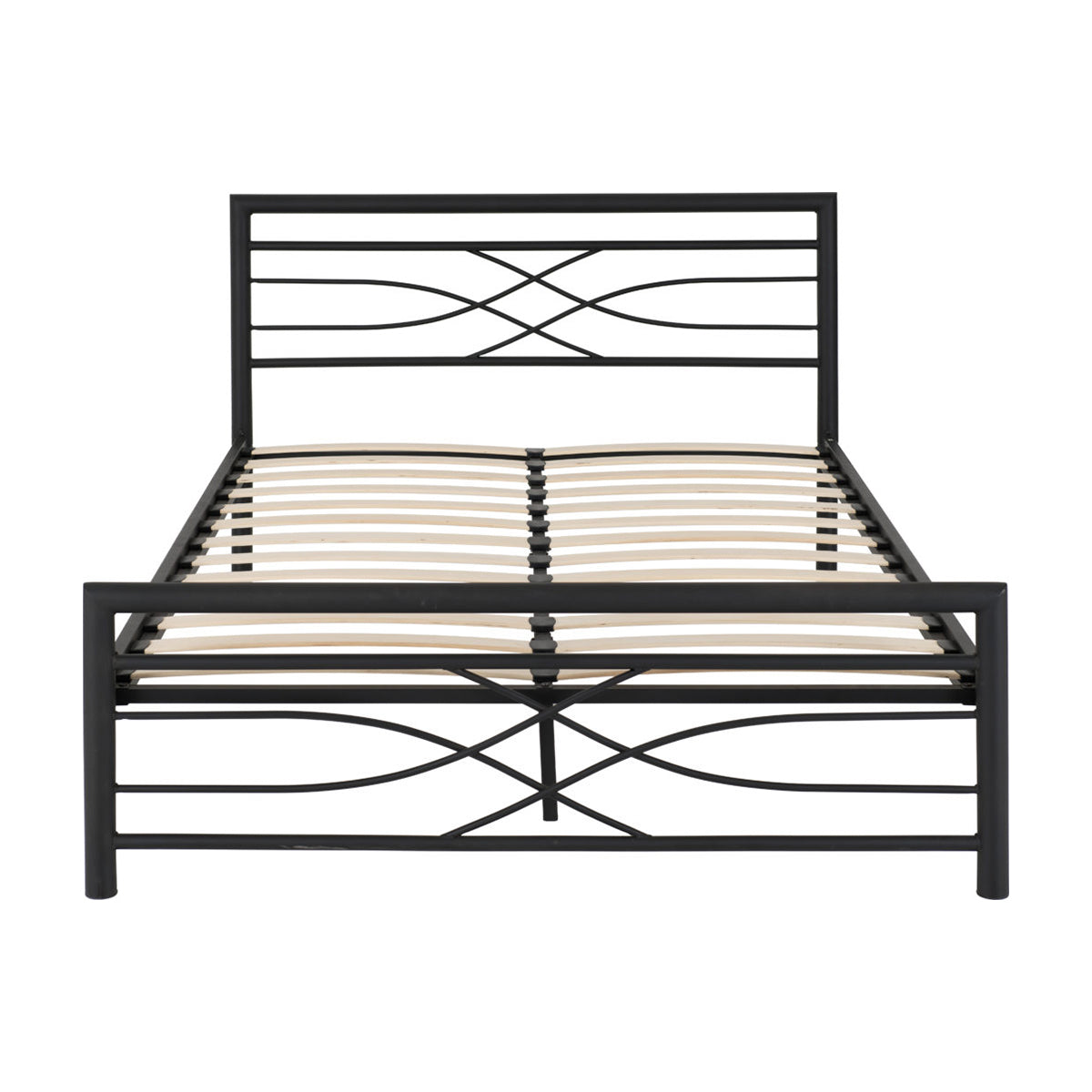 Gorgeous bed frame with a bold, robust design. Features a sleek black finish and unique design for a sophisticated look.