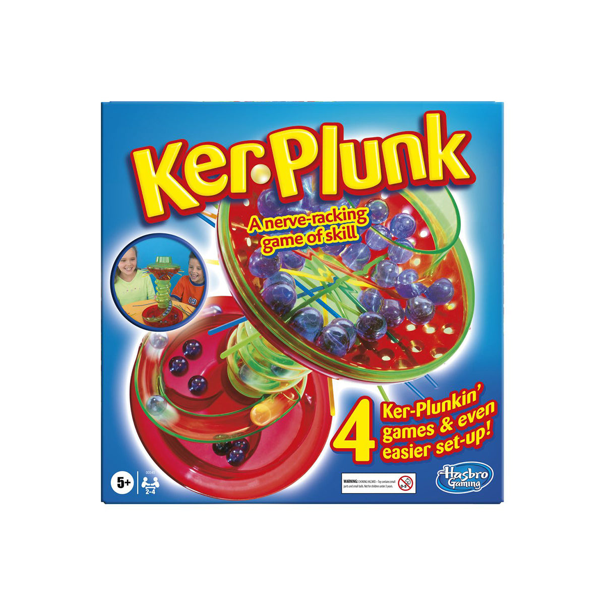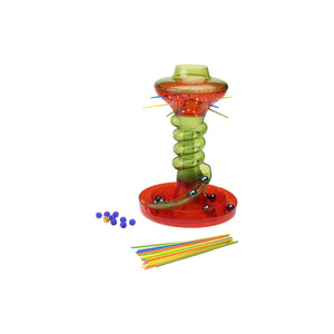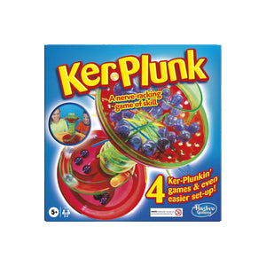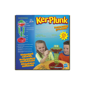 Test your skills and your nerves with the KerPlunk game! Is your hand steady enough to pull out the sticks without dislodging the marbles? If it isn’t, they'll come rolling down the chute! Finish with the fewest marbles for the win! You can start with KerPlunked, the basic game and then move on to more challenging games like Golden Ball, Tricksy Trays and Hot Sticks. Then you and your friends can invent your own games! Can you take the nailbiting fun of KerPlunk? There’s only one way to find out! KerPlunk and all related characters are trademarks of Hasbro.