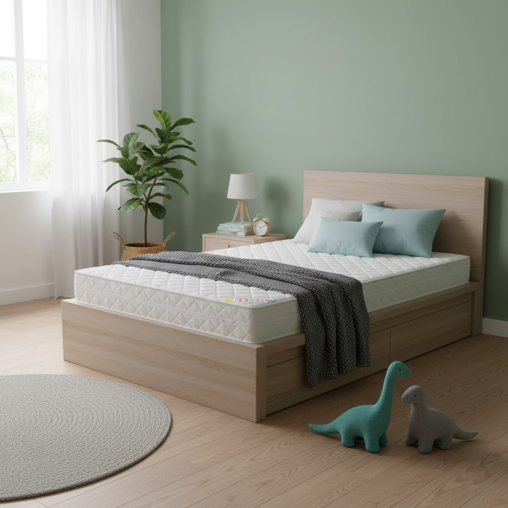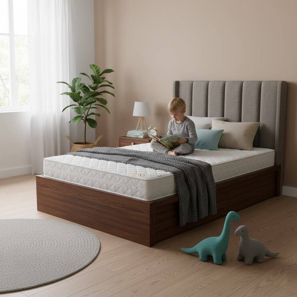 This Junior Sprung Mattress combines durable springs with high-resilience foam to deliver medium comfort and consistent support — fully compliant with UK safety and ignition standards.