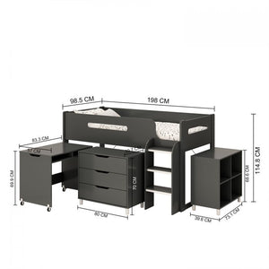 Let your little one sleep up high surrounded by their favourite belongings in this mid-sleeper bed, which unites fun and functionality Available in oak to suit any decor, the bed also features integrated desk, drawers and bookcase providing plenty of storage space.