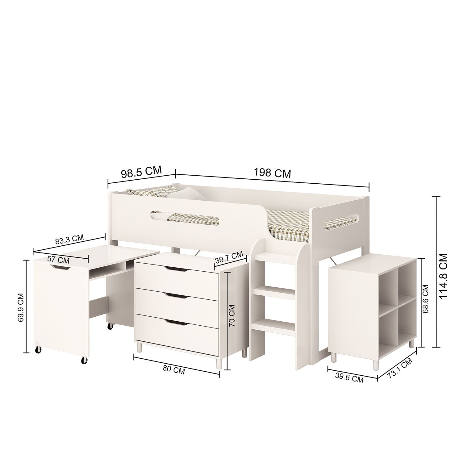 Let your little one sleep up high surrounded by their favourite belongings in this mid-sleeper bed, which unites fun and functionality Available in oak to suit any decor, the bed also features integrated desk, drawers and bookcase providing plenty of storage space.