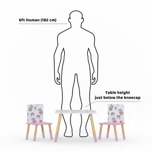 The Peppa Pig Table & 2 Chairs is for kids that love to play, read or draw. Featuring high-quality digitally printed graphics of your favourite characters, Peppa & George splashing in the mud on the tabletop and on the chair backs, fun and colourful.