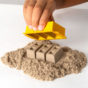 Kinetic Sand is the original magical, moldable and mesmerizing sensory sand. It flows through your hands and never dries out so you can play again and again. Build a brick wall using the brick mold and clip the jackhammer attachment onto the truck. Crush the wall and start all over! Switch the attachments on the truck and scoop the Kinetic Sand to move it around the construction site!