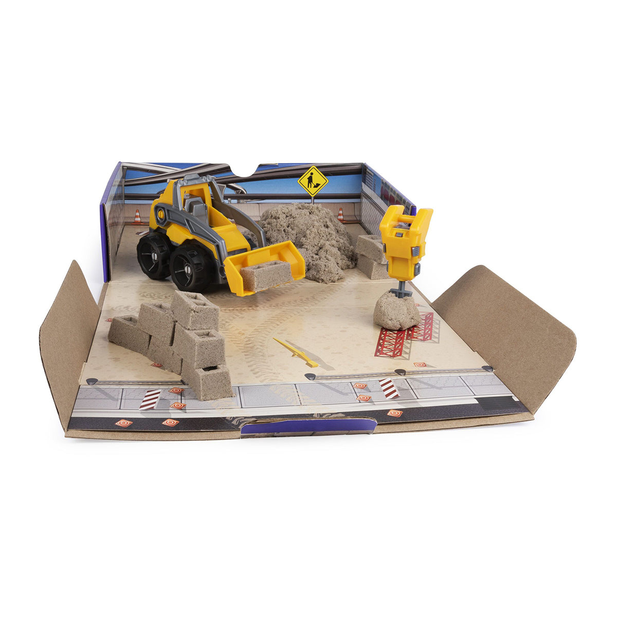 The Dig & Demolish box even opens up into an enclosed construction play space. When you’re finished playing, pack everything away inside the box until next time for easy storage. Let Kinetic Sand flow through your hands – it’s so satisfying, you won’t be able to put it down! Kinetic Sand is made from natural sand and is wheat, gluten and casein free. This construction-themed Kinetic Sand sensory toy is perfect for kids ages 3 and up. Create with the Kinetic Sand Dig & Demolish Set again and again and have hours of construction fun!
