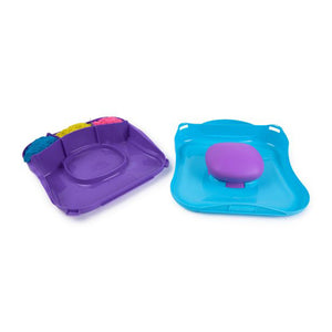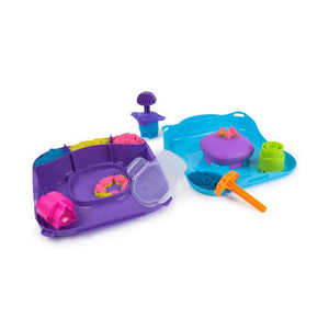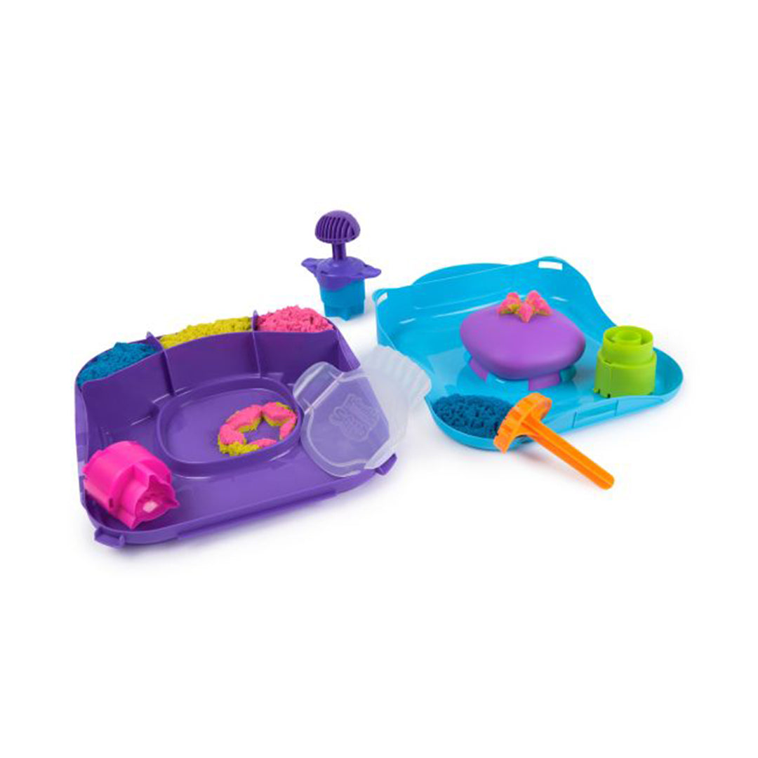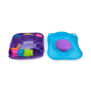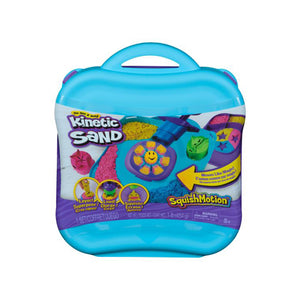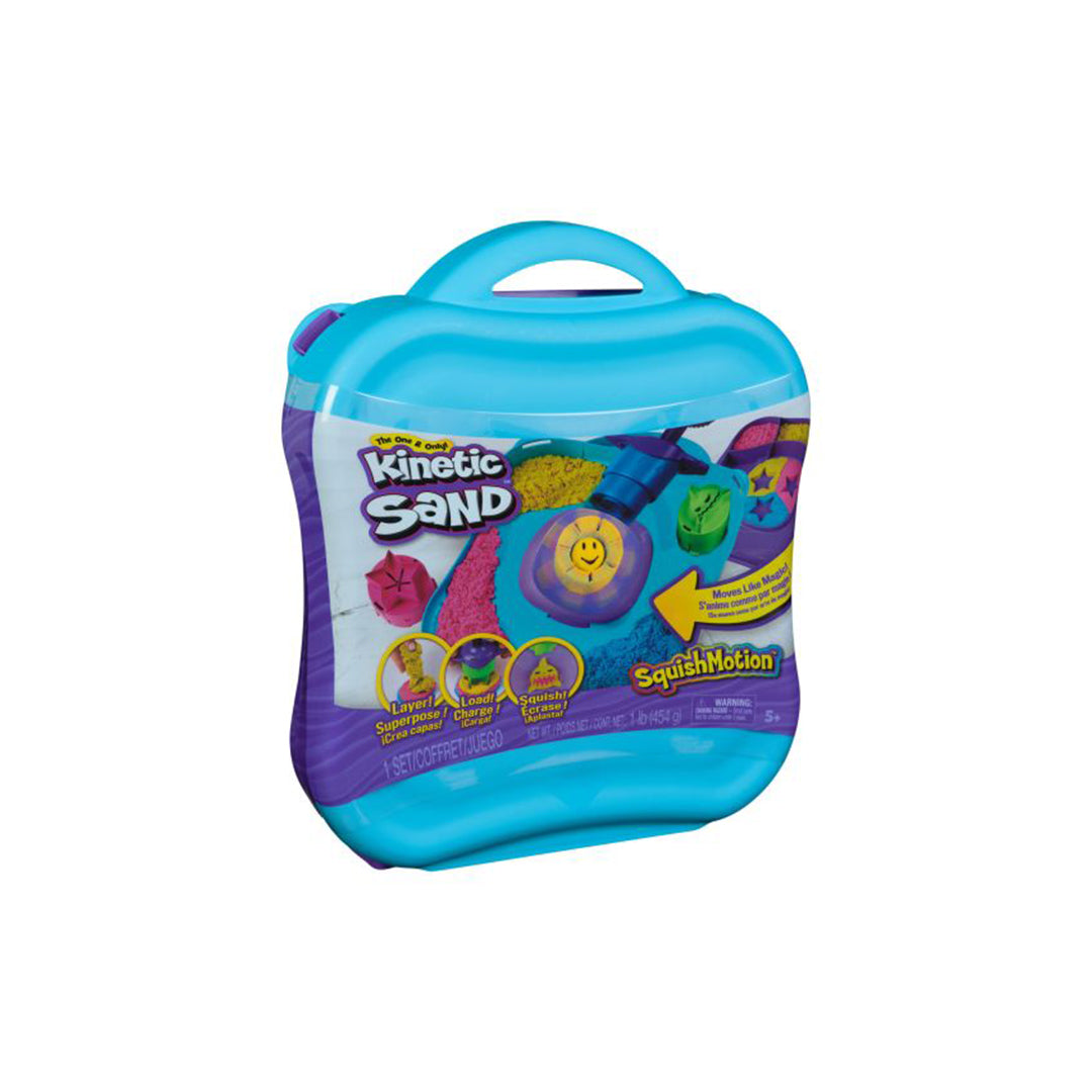 Bring creativity and movement to life with the Kinetic Sand SquishMotion playset. This Kinetic Sand kit will spark imagination and excitement as kids squish to reveal their mesmerising sand creations on a moving play space. SquishMotion is as easy as layer, load and squish. Layer pink, yellow and blue Kinetic Sand (453g) inside the case, flatten with the crinkle cutter, and load the shark, sun or star on your stamper tool. Press and squish onto the foam sand space and watch the motion of your creations — the shark chomps, the sun blooms and the star bursts. Flow, mix and layer directly onto the squish space, then slice with the crinkle cutter and use the shoe stamper for more endless play. The squishibilities are endless. The One and Only Kinetic Sand is made from natural sand that sticks to itself for easy clean-up. Create again and again — it’s so satisfying, you won’t be able to put it down. Kinetic Sand is a welcome addition to the sensory bin or sensory table, arts and crafts kids’ activities and Montessori toys. Kinetic Sand promotes fine motor skills and creativity through independent tactile play. Experience magic in every reveal with Kinetic Sand SquishMotion.