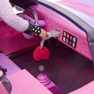 The playset has fabulous features with realistic styling to help spark imagination including a rotating steering wheel, rolling wheels, 2 side mirrors, a detailed front dashboard, insertable car keys, a heart keychain, and seatbelts to keep the dolls buckled up when they hit the road! The car includes seats for your OMG and Tweens fashion dolls and even a booster seat that you can push in and out for your favourite tot to take over the wheel.