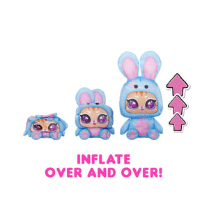 Close up the pet costume and watch as it grows and fully inflates, giving you two best friends to play with together – Aya Cherry and her bunny costume! And the fun doesn’t stop there - simply toggle the on and off switch at the bottom of your pet costume to repeat the inflating fun over and over again!