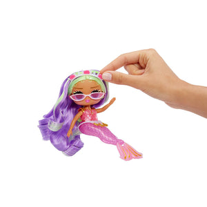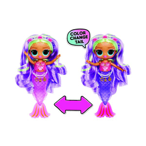 I'm in Be Tween, with underwater style and colourful surprises like you've never seen! Look out world, cuz we mermaids are going to make a splash! Get ready to dive into an enchanting world of magical mermaid fun with the all-new L.O.L. Surprise Tweens Mermaid Cleo Clove fashion doll with dazzling accessories to unbox! Perfect for bath time and imaginative play, Cleo Clove brings a splash of excitement with her beautiful colour-changing tail and mesmerizing fin that can move back and forth!
