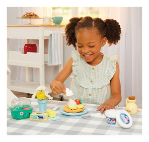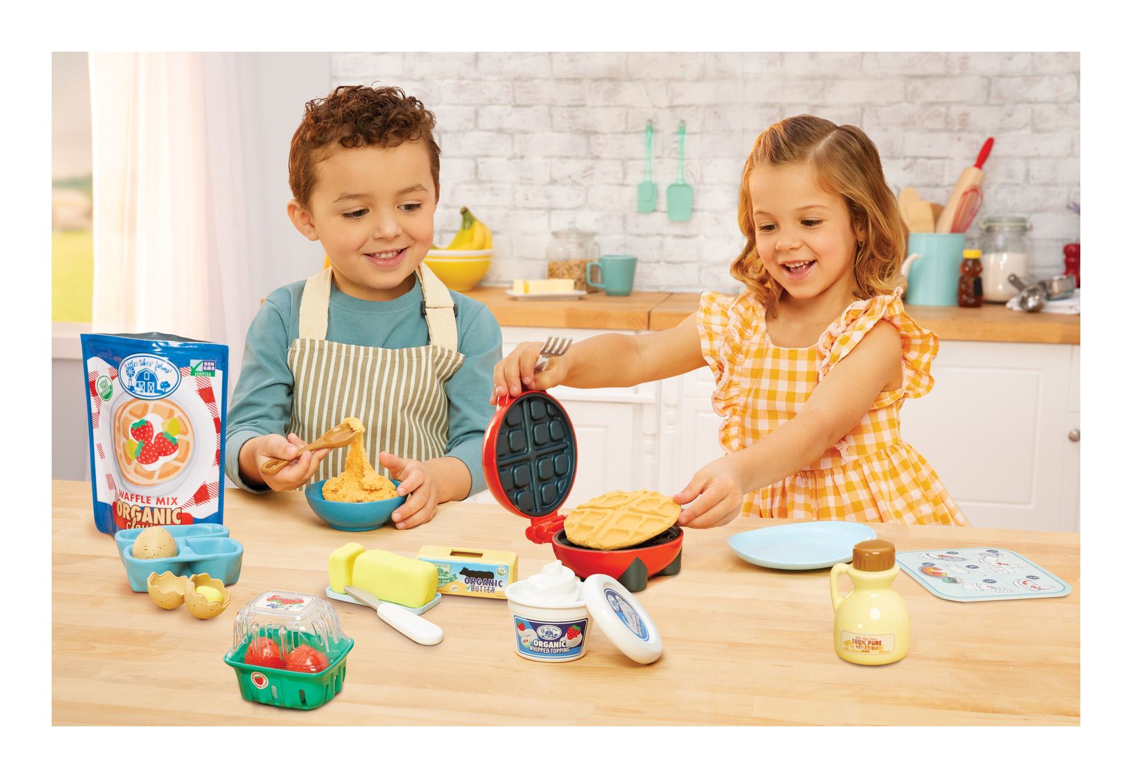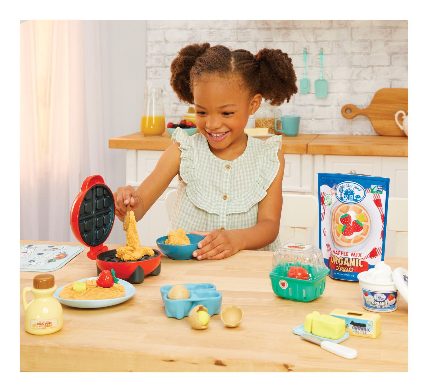 Your little chef will have every appliance and ingredient that they need to practice making delicious Belgian-style waffles with this playset. With the visual recipe card, kids can learn the basics of making breakfast with mouldable and reusable Make-It! Mix™ ingredients. This intricate breakfast kit features hyper-detailed play food and utensils for young chefs-in-training to get a feel for the real culinary experience during playtime.
