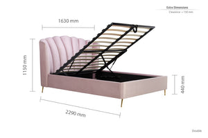 The ottoman base with gas lift arms gives the Lottie a gorgeous style with a practical edge. The gas piston strength on this frame is 600 N and can support mattresses up to the weight of 45 kg, perfect for storing clothes, shoes, bedding and more.