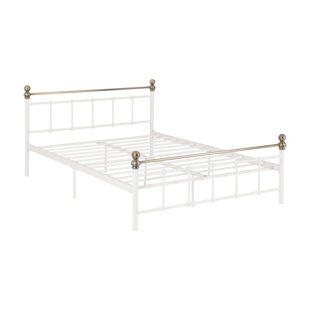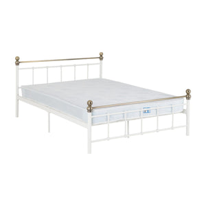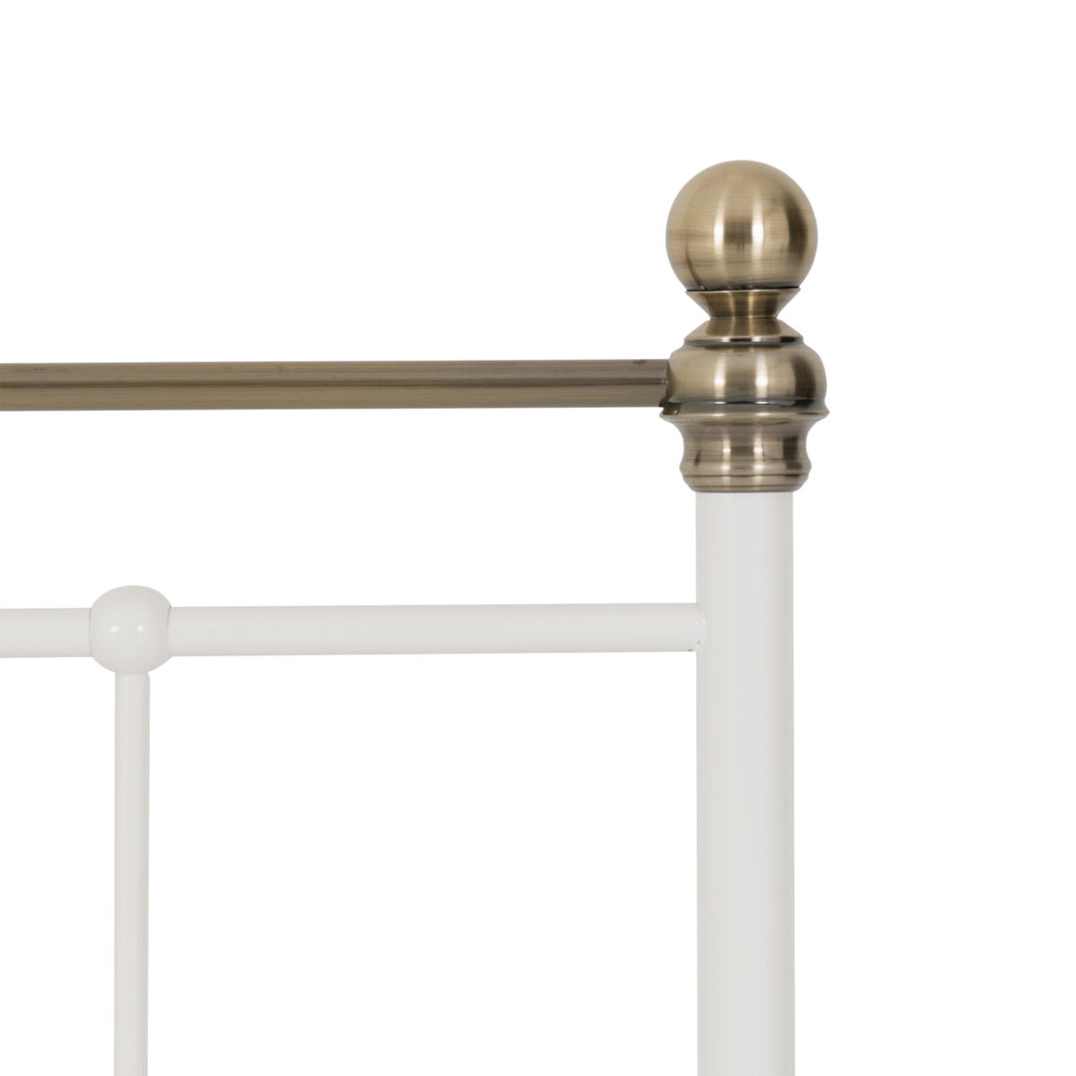4FT6 Marlborough 4FT6 Bed - White/Antique Brass: