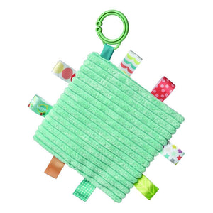 Crinkle Me Taggies are 6.5 x 6.5-Inches, with a fun animal applique and colorful patterned fabric on the outside, crinkle paper and squeaker on the inside. Featuring lots of interactive tags and a flexible loop for attaching to stroller and crib. With truly innovative attributes and small beginnings, Taggies has revolutionized and redefined how little ones feel secure and engaged in play. Taggies was born when a mom noticed her child's fascination with satin tags, and blossomed into a world of treasured products. Exploring Taggies textured tags can provide tactile stimulation that babies crave for development and have an amazing calming effect on little ones. Taggies Signature Collection is recognized as the premium line of wonderfully soft and soothing Taggies toys made by Mary Meyer.