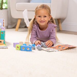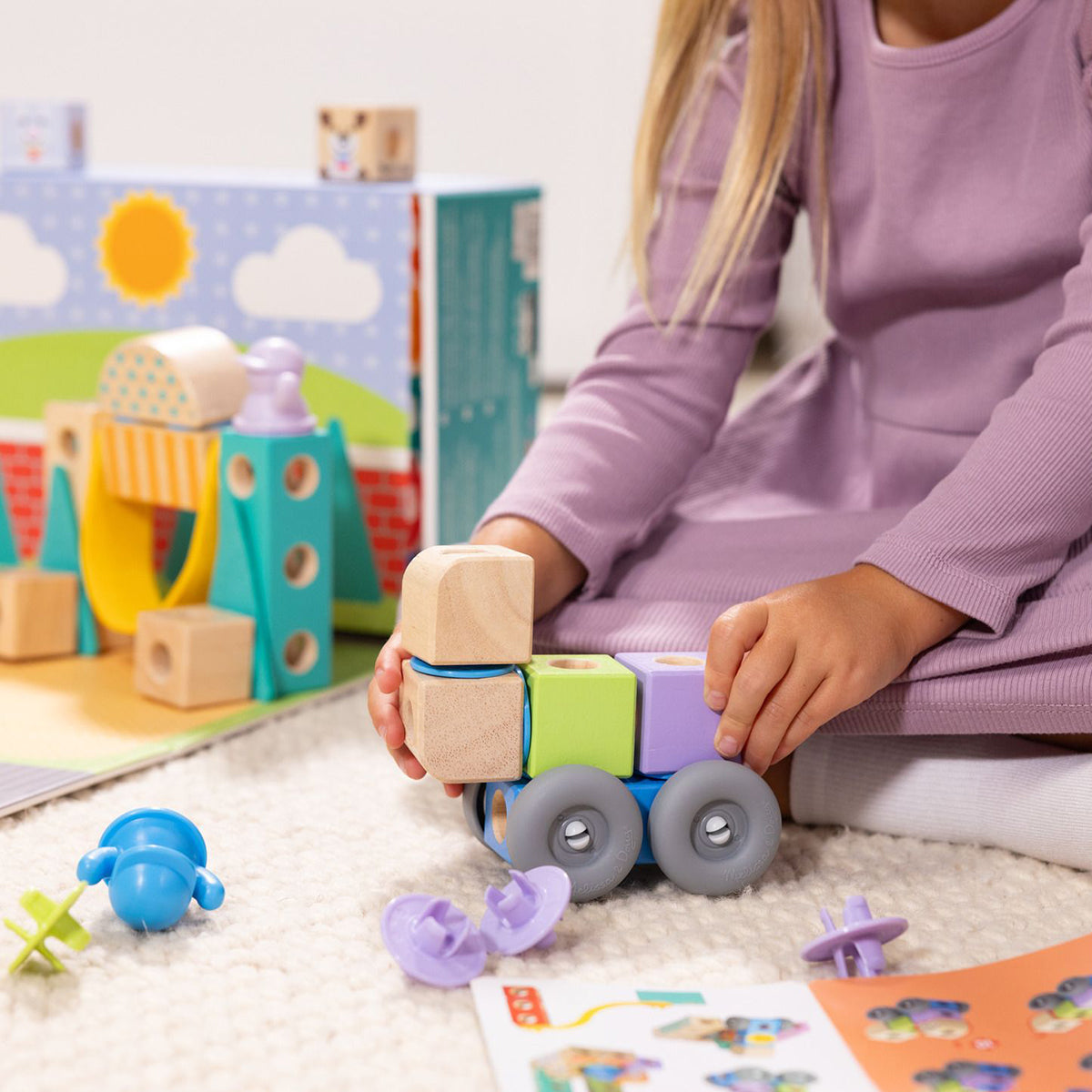 Melissa & Doug Blockables™ are connectable, stackable, and playable! The solid wood connect-and-play building blocks are perfect manipulatives to help preschoolers two and older boost developmental skills (fine motor, problem-solving, matching, storytelling, and self-esteem), while using their imaginations and having fun.