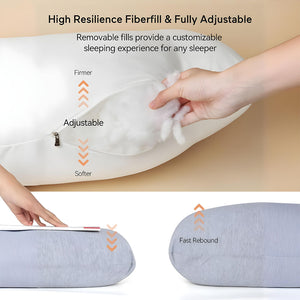 - Cooling Cover: The pillow comes with a special cooling cover that is cool to the touch and helps disperse heat. Perfect for the summer or during pregnancy to help you feel cooler through the night.