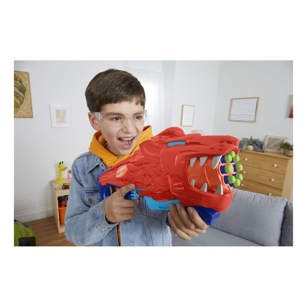 Nerf Wild blasters are designed with special features that make them easy to play with, so young kids can enjoy playing with these wild-looking blasters all by themselves. They're easy to hold, sized to fit comfortably in small hands, and lightweight for easy carrying in backyard games. The front-loading design makes it easy to insert darts, and the handles have the lowest pull force of any Nerf dart blasters, for easy blasting. All these features let kids experience the thrill of blasting all by themselves. They're perfect for boys and girls who are blasting into Nerf dart games for the first time. The Nerf Lionfury blaster features an awesome lion design that captures the look of this ferocious feline with vibrant colors and exciting details! This Nerf blaster lion toy includes 16 Nerf Elite 2.0 flexible foam darts. Eyewear recommended (not included). Blasters each sold separately, subject to availability.