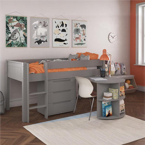 New Classic Midsleeper With Pull Out Desk And 3 Drawer Chest Grey