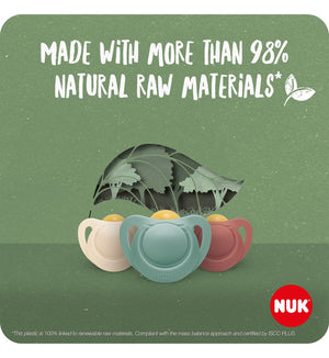 - Big changes start small: NUK for Nature soothers are made from more than 98% natural rubber latex and sustainable plastic that is 100% linked to renewable raw materials*