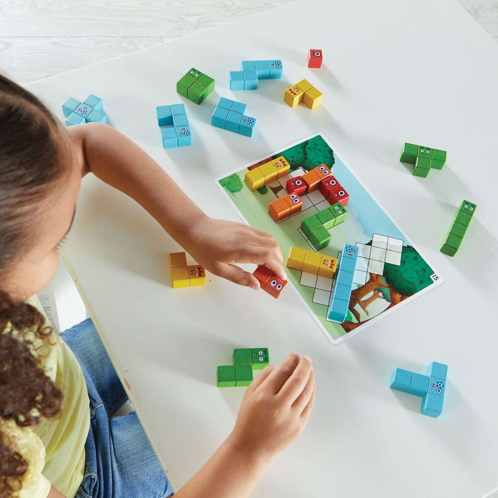 Learning Resources® Numberblocks™ Wooden Building Blocks Activity Set Watch early years maths skills stack up with this Numberblocks building activity set! This set has Numberblocks One to Five in every shape each character can make. As children use the Numberblocks polyominoes to build towers, create new shapes and do the 20 building challenges shown on the activity cards, they build their problem-solving and mathematical reasoning skills through fun, hands-on learning. Includes 28 wooden Numberblocks pieces, 10 double-sided activity cards and a storage bag. The Activity Guide and packaging are multilingual. 39 Piece Set