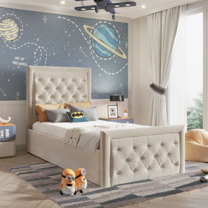 The Bella Kids bed is a simple and versatile option for modern settings. With a clean-lined shape and large headboard, it's supported by sprung slats in the base with ottoman options available. The bed is upholstered in our premium plush velvet fabric for a soft, elegant finish