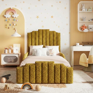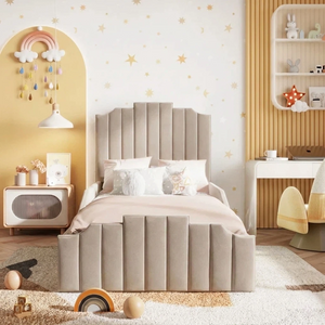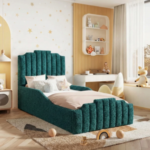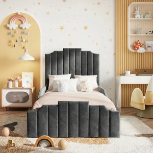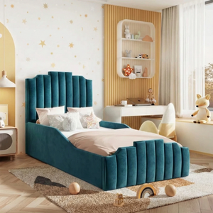 The Florence Kids Bed is a stylish and versatile choice for modern bedrooms. Featuring a clean-lined shape, large hand-pleated headboard, and sprung slatted base, it can be upgraded with ottoman storage. Upholstered in soft plush velvet and available in a variety of colours and fabrics, it offers optional detailed or plain foot ends and safety rails for children. Handmade in the UK to exacting standards, it ensures durability, comfort, and peace of mind. Ottoman beds do not include bases, and mattresses over 22 cm deep are not compatible with safety rails.