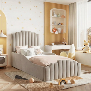 The Normal Side Rail for Babyfair beds is a sleek, practical addition designed to bridge the gap between a crib and a full-sized toddler bed. Wrapped in a soft, padded fabric that matches the bed’s aesthetic.
