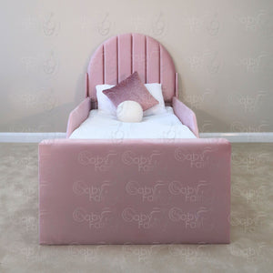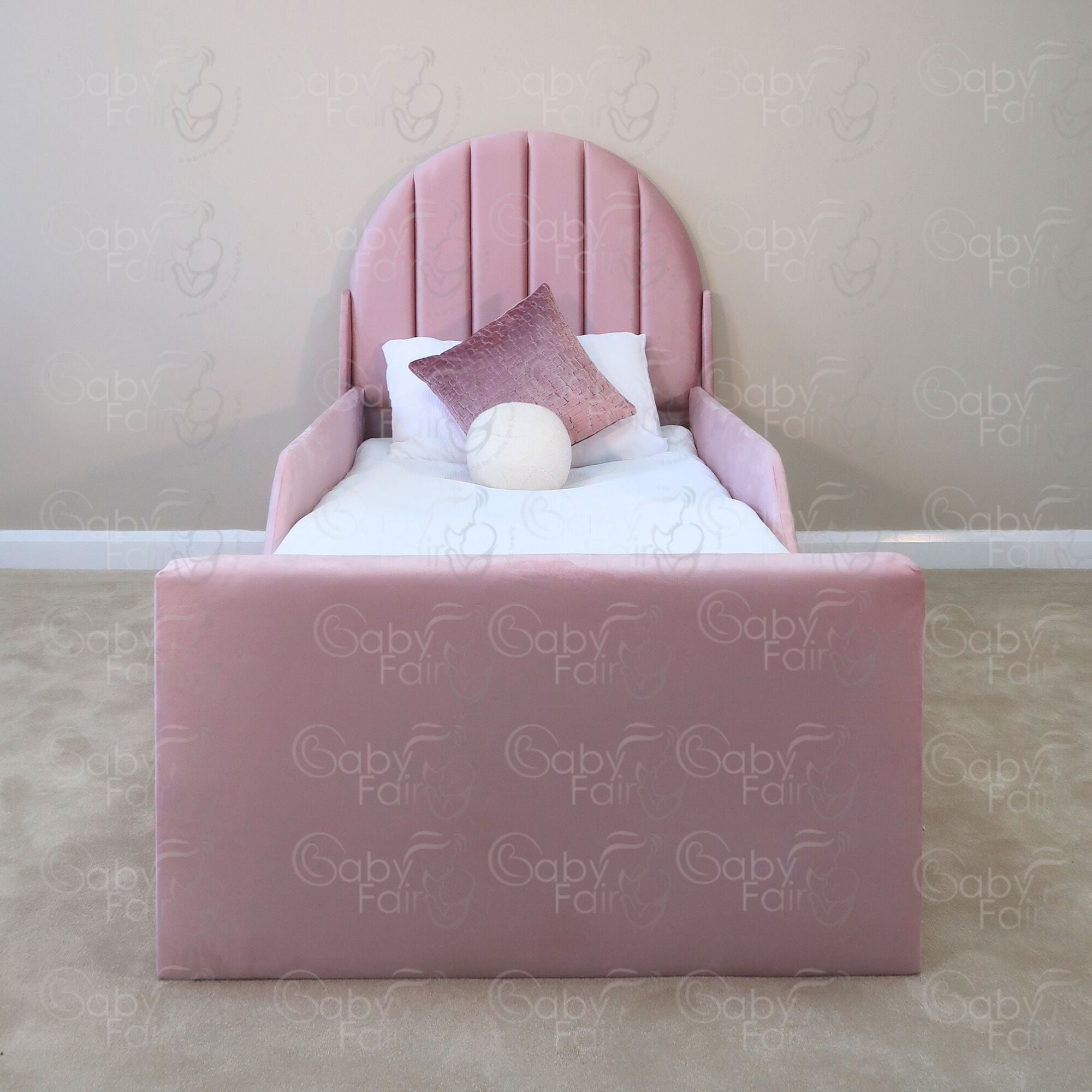 The Blossom Curve Kids Bed is a simple and versatile option for modern settings. With a clean-lined shape and large headboard, it's supported by sprung slats in the base with ottoman options available. We've upholstered it in our soft plush velvet fabric.