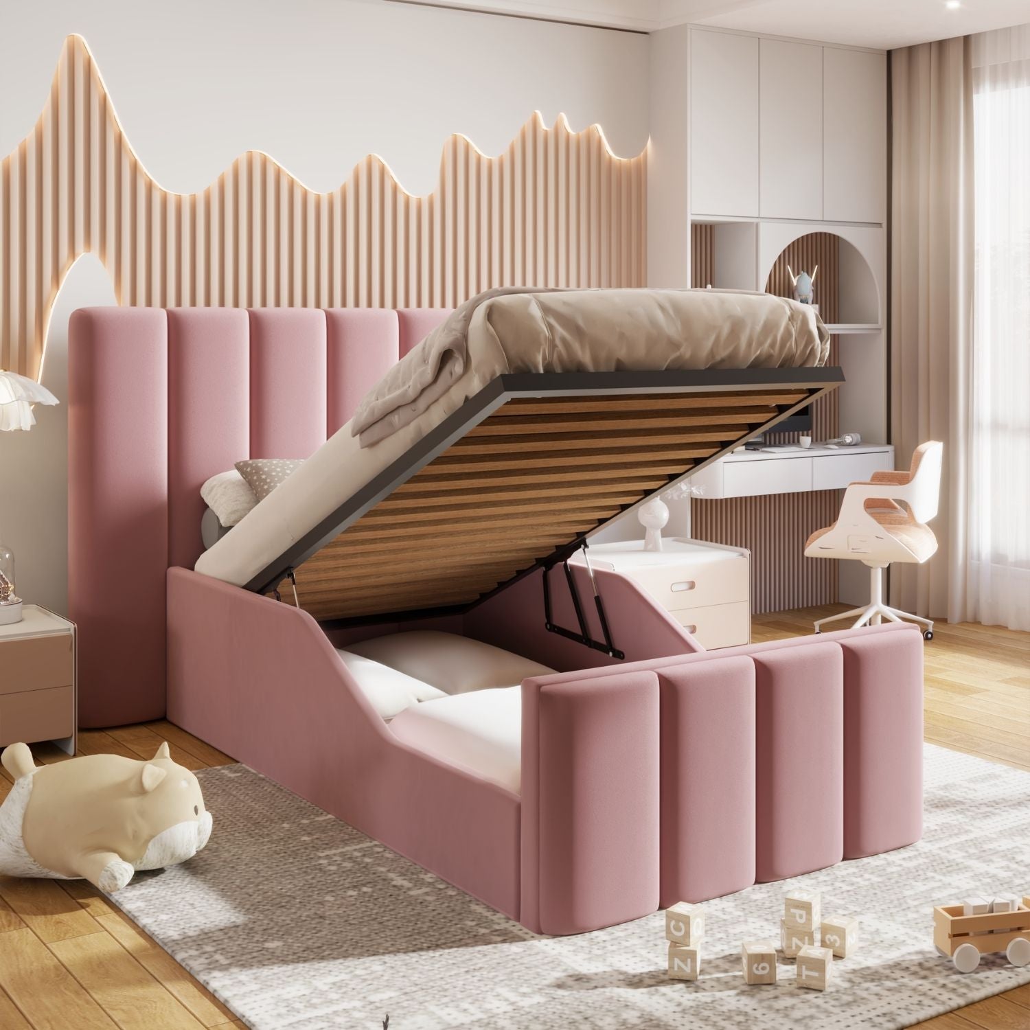The Aspen Kids Bed is a simple and versatile option for modern settings. With a clean-lined shape and large headboard, it's supported by a sprung slatted base with ottoman options available. We've upholstered it in our soft plush velvet fabric.