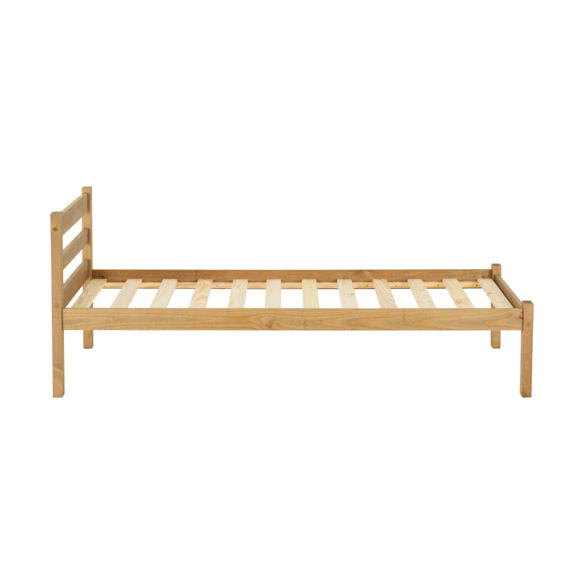 A traditional wooden 3ft single bed frame crafted from sturdy pine with a natural wax finish. This solid frame has been beautifully crafted from solid pine and finished with a neutral natural wax finish. Featuring a simple slatted headend, the Panama Bed is sure to be a lasting addition to your bedroom. Co-ordinating items are available to purchase within the Panama range.