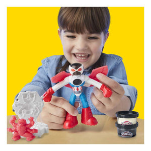 Imagination can save the day with the Play-Doh Captain America Moto-Slicer Playset! It's easy and fun for kids to create their own adventures with their favorite characters like Captain America. The Play-Doh Marvel action figure has bendy, flexible arms and legs that kids can customize with different Play-Doh accessories. The 2-in-1 wings can attach to both the figure and the vehicle for slicing action. Create bad guys with the book-mold, which also has pegs on the top to display the figure. 3 squishy, colorful cans of Play-Doh compound are great when it's time for arts and crafts for boys and girls. Rev up their creativity with the moto bike toy! It's a great Captain America gift for boys and girls who love Play-Doh sets and Super-Hero toys. PLAY-DOH and HASBRO and all related trademarks and logos are trademarks of Hasbro, Inc. Copyright MARVEL. All trademarks and registered trademarks are the property of their respective owners.