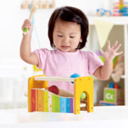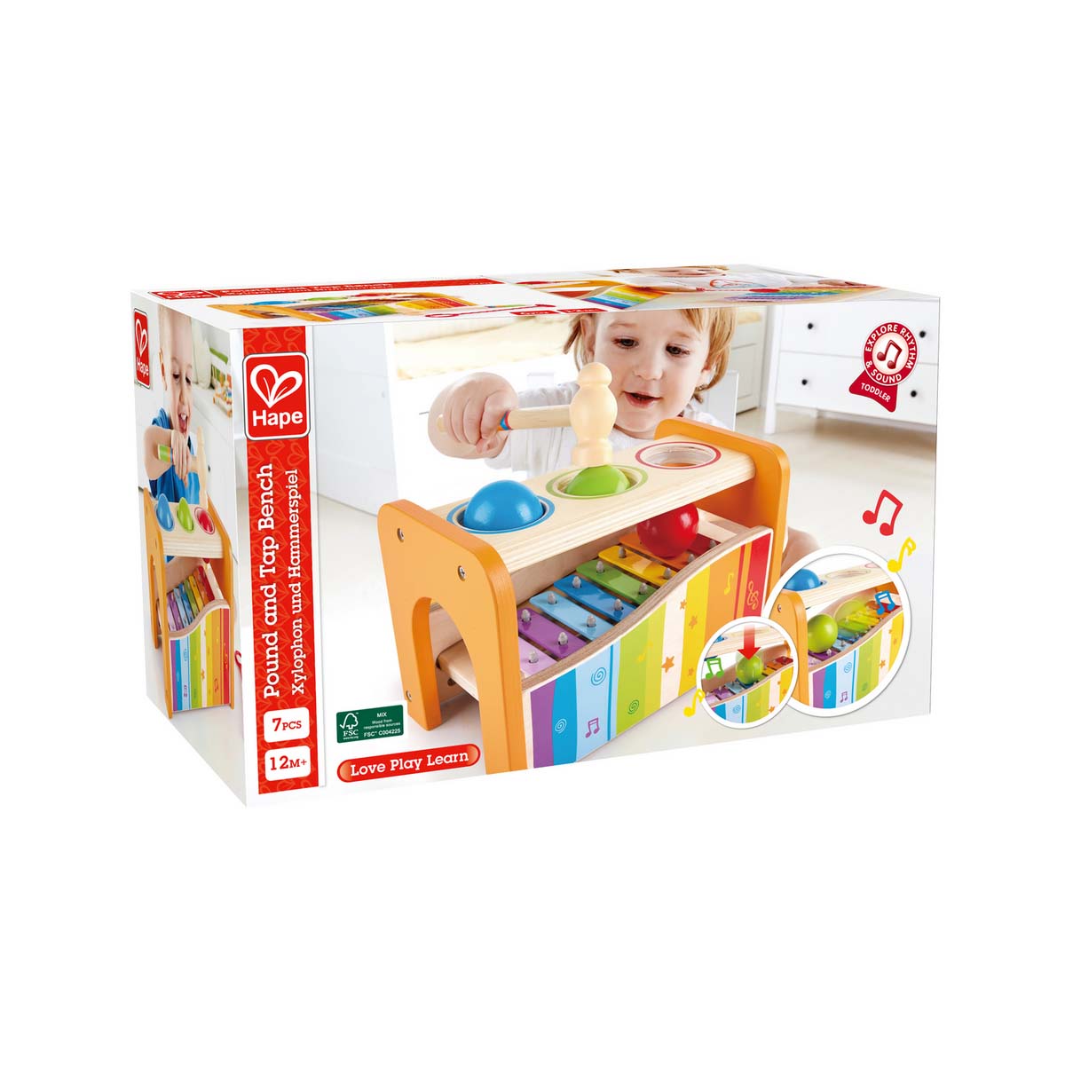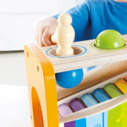 Pounding sends the balls tinkling over the xylophone. Pull out the keyboard and the xylophone can be played solo.