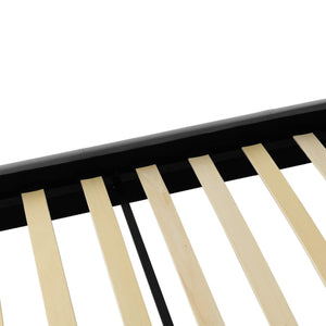 The 5′ Double Prado bed has a padded frame upholstered in grey fabric, with a neat, stitched headboard and light wooden legs, showcasing its restrained modern style. A beautiful bed for any decor, and perfect for sleepyheads to rest.