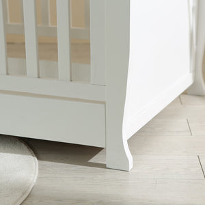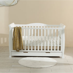 Introducing the Pure Bliss Baby Cot, a perfect blend of style, comfort, and functionality for your baby's nursery. This elegant cot is designed to provide a safe and cozy sleeping environment for your little one while adding a touch of sophistication to your home decor.