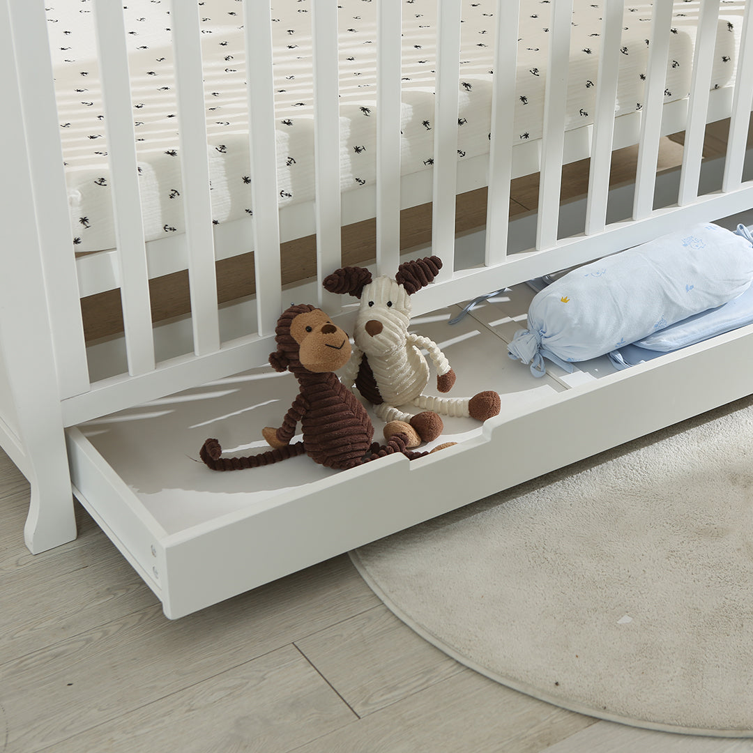- Stylish Storage Solution: The built-in drawer provides a discreet storage solution for bedding, toys, and other essentials, helping maintain a clutter-free nursery.