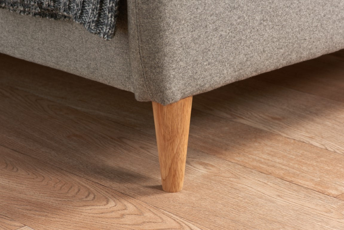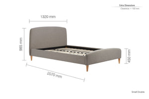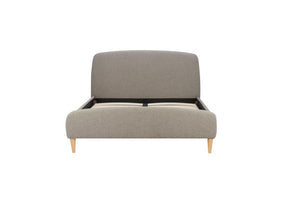 Gentle curves to the headboard and foot end, along with stunning soft fabric compliments the light wood feet.