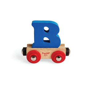 Bigjigs Rail Name carriages are loaded with a brightly coloured wooden letter or number. Each letter or number is removable and can be interchanged with other wagons and carriages in your wooden train set.