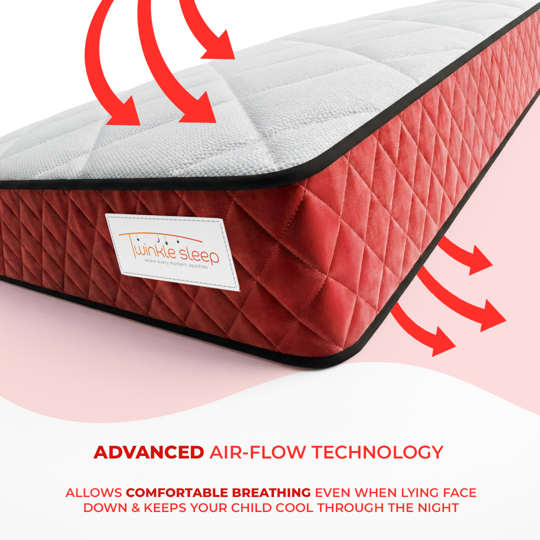 The Kids Mattres with Premium Cool Touch Fabric: The Cool Touch Fabric surface is up to 10 times more breathable than standard cooltouch providing Air-Conditioned sleep for your body by regulating core temperature & inhibiting overheating whilst sleeping.