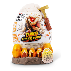 Calling all explorers! Embark on an exhilarating journey with Robo Alive Fossil Find Amber Adventure! Delve deep into layers of rock and sand, and be careful of the Magma glow-in-the-dark slime that adds an unexpected twist to your excavation. Unearth hidden dinosaur fossils and enchanting Amber eggs. Assemble the fossils to see your dinosaur spring to life with stunning light-up features. This interactive adventure offers the thrill of discovery and the fun of collecting and building four unique dinosaurs. Engage in this captivating exploration and experience the wonder—what ancient dinosaur will reveal itself from your exciting search?