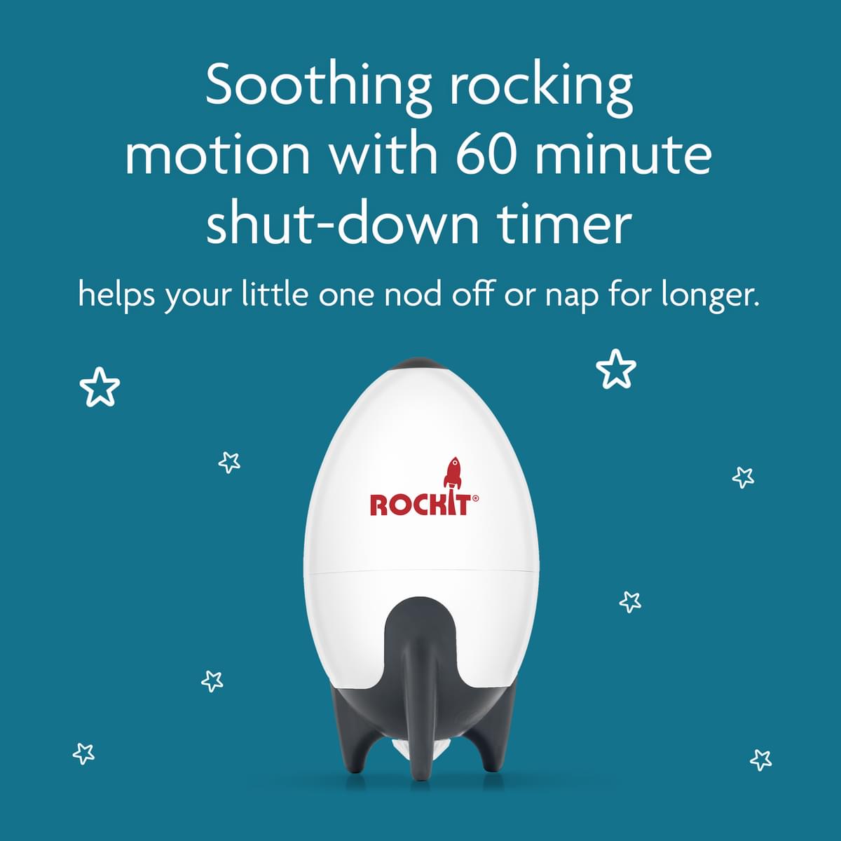 The Rockit uses a gentle rocking motion to safely soothe baby. Scientific tests show the vibration level closely mimics the normal hand rocking of a pushchair and the soothing movement is gentler than a pushchair moving over paving stones.