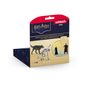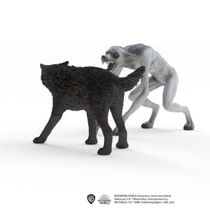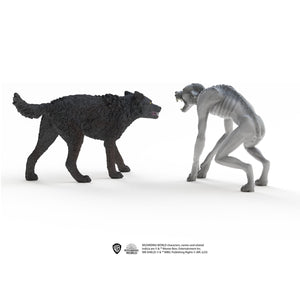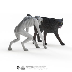 The black Animagus looks impressive with its strong teeth. But it looks almost harmless compared to the terrifying werewolf. The werewolf is so skinny that every bone sticks out like a skeleton. The greyish skin stretches over it. It stares meanly at the Animagus and opens its huge mouth. It shows its sharp fangs and lets out a bloodcurdling snarl. Is there about to be a fight? Let's get out of here!