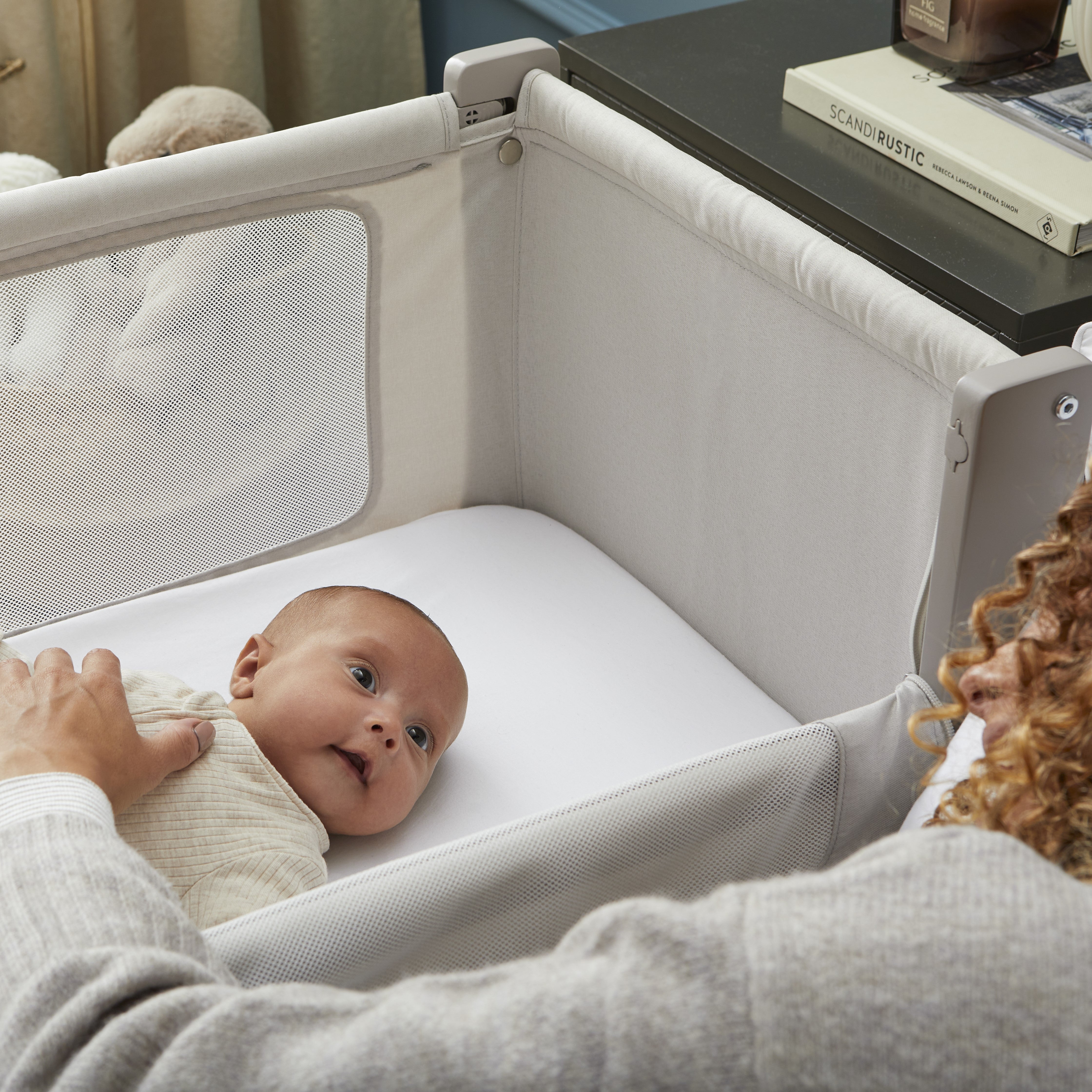 Its spacious yet compact size comforts and cocoons baby, offering reassurance as well as peace of mind to you. The ‘furniture quality’ design ensures a sturdier bedside crib with a premium style that doesn’t compromise on function. Use as a standalone crib or attached to the bed for bedside sleeping.