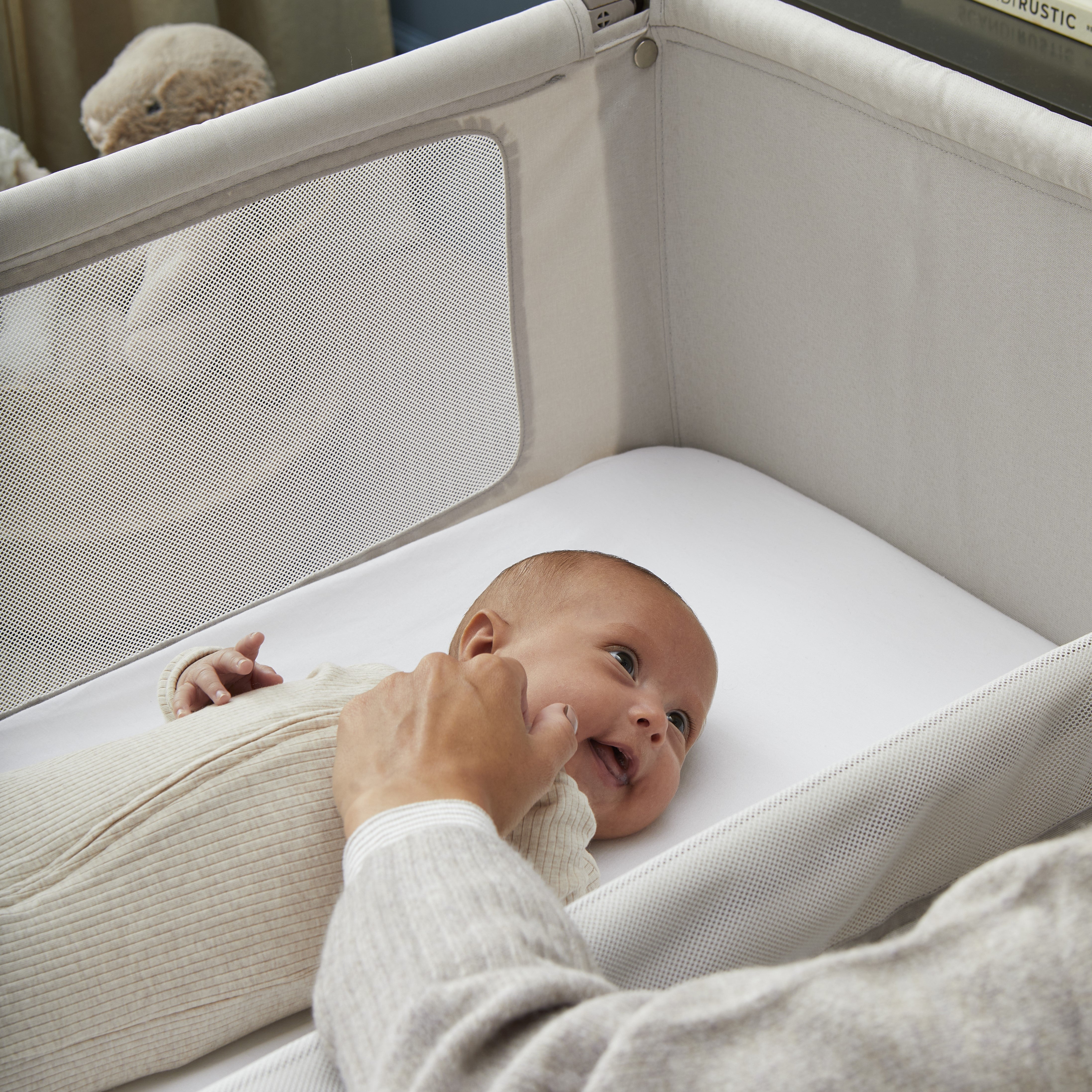 Tested to latest bedside crib safety standard and designed for maximum airflow and breathability.