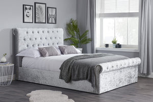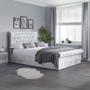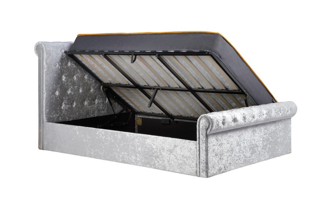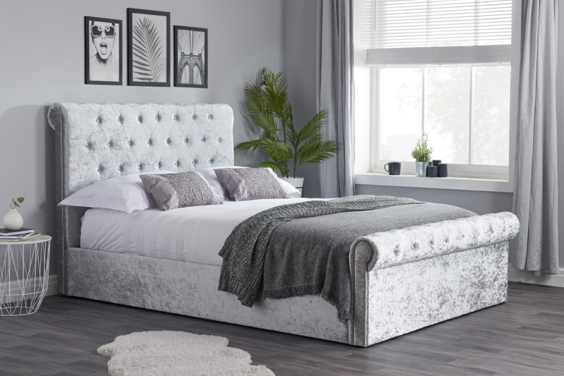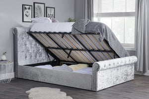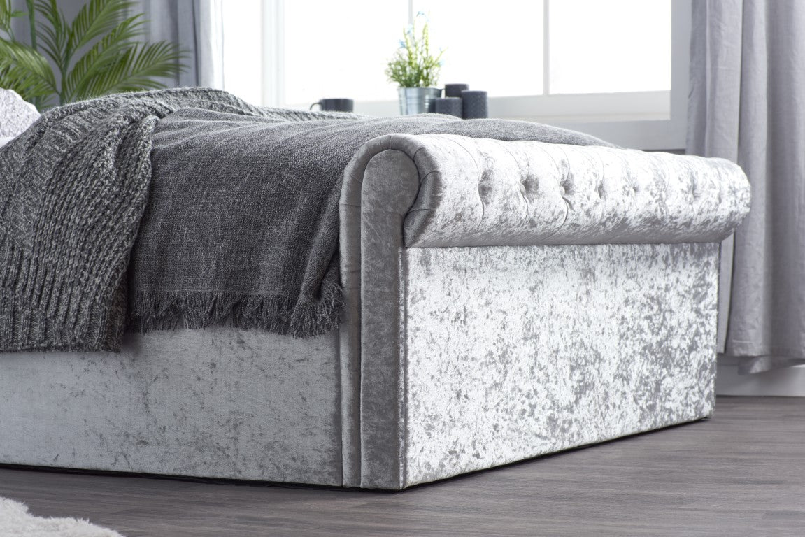 Sienna Fabric Side Ottoman Bed - Crush Velvet Steel