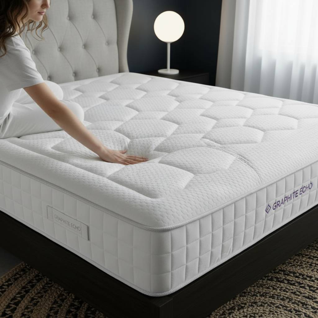 This is a prominent thick, dark grey foam layer. This is the specialized "Graphite Echo" foam, which provides precise body contouring and superior pressure relief, while the Graphite infusion actively removes heat for an exceptionally cool sleep.